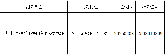 根據(jù)《池州市投資控股集團(tuán)2025年下半年公開招聘工作人員公告》要求,由于入圍現(xiàn)場資格復(fù)審的考生中有部分人員自動放棄或不合格產(chǎn)生了人員空缺,現(xiàn)按《公告》要求,在報(bào)考同崗位的考生中按筆試成績從高分到低分的順序依次遞補(bǔ),成績出現(xiàn)并列者一并進(jìn)入資格復(fù)審,現(xiàn)將入圍遞補(bǔ)資格復(fù)審情況公告如下: