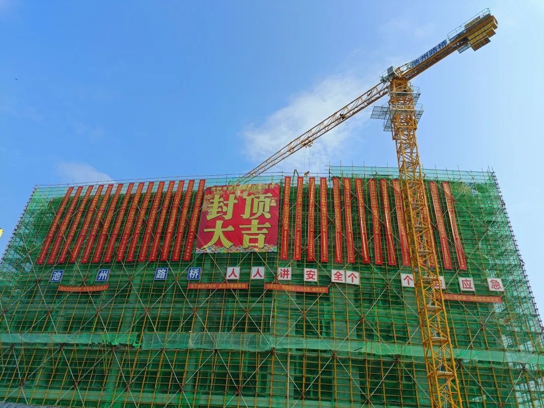 自2022年9月26日開工建設(shè)以來,建投集團組織精干隊伍,派駐優(yōu)秀技術(shù)骨干,投入先進機械設(shè)備,全力按高起點、高標(biāo)準(zhǔn)、嚴(yán)要求推進項目建設(shè)。于2022年底前完成了深基坑開挖及支護工程,為項目主體施工奠定了安全、堅實的基礎(chǔ)。主體結(jié)構(gòu)施工中采用大跨度、高支模及后張法預(yù)應(yīng)力梁工藝,秉承“安全第一、預(yù)防為主、綜合治理”的安全生產(chǎn)方針,堅持安全是根本、質(zhì)量是生命的發(fā)展理念,全力推動項目建設(shè),克服困難,承壓奮進。最終歷時10個月,于2023年8月6日圓滿完成主體結(jié)構(gòu)封頂。