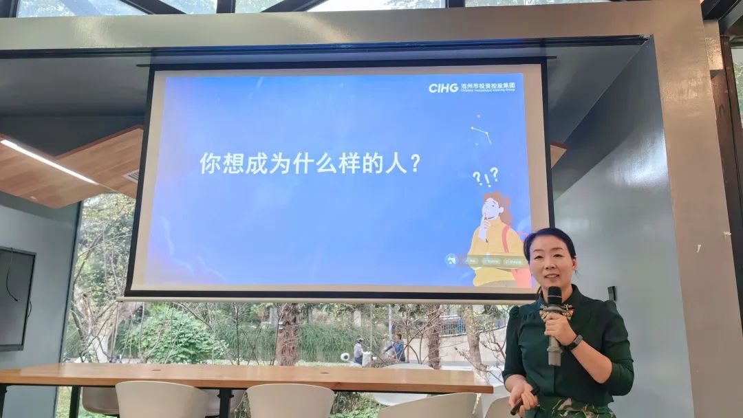 嚴(yán)艷副書記首先向?qū)W生們介紹了池州市投資控股集團(tuán)的基本情況及對(duì)人才的需求,并以《員工在企業(yè)的成長(zhǎng)路徑》為主題結(jié)合自身工作經(jīng)歷,以“你想成為什么樣的人”“能力or平臺(tái)”“家庭or事業(yè)”等問題與現(xiàn)場(chǎng)的學(xué)生互動(dòng)講述了一名職場(chǎng)新人如何快速成長(zhǎng)。