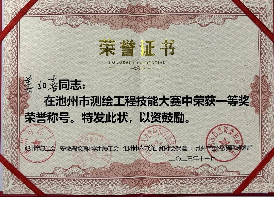 大賽設(shè)置了理論知識(shí)測(cè)試、團(tuán)體技能操作和個(gè)人技能操作三個(gè)環(huán)節(jié)。設(shè)計(jì)總院5名職工參賽,參賽選手們先后完成了GNSS-RTK施工放樣、1:500數(shù)字地形圖測(cè)繪、四等水準(zhǔn)測(cè)量、測(cè)繪理論知識(shí)等多個(gè)項(xiàng)目,積極將所學(xué)理論知識(shí)轉(zhuǎn)化為實(shí)操技能,展現(xiàn)了良好的競(jìng)技風(fēng)貌。經(jīng)過(guò)激烈地角逐,池州市規(guī)劃勘測(cè)設(shè)計(jì)總院有限公司榮獲團(tuán)體一等獎(jiǎng),所屬測(cè)繪分院職工姜加喜和舒江洲兩位同志分別獲得個(gè)人賽一等獎(jiǎng)和三等獎(jiǎng)。