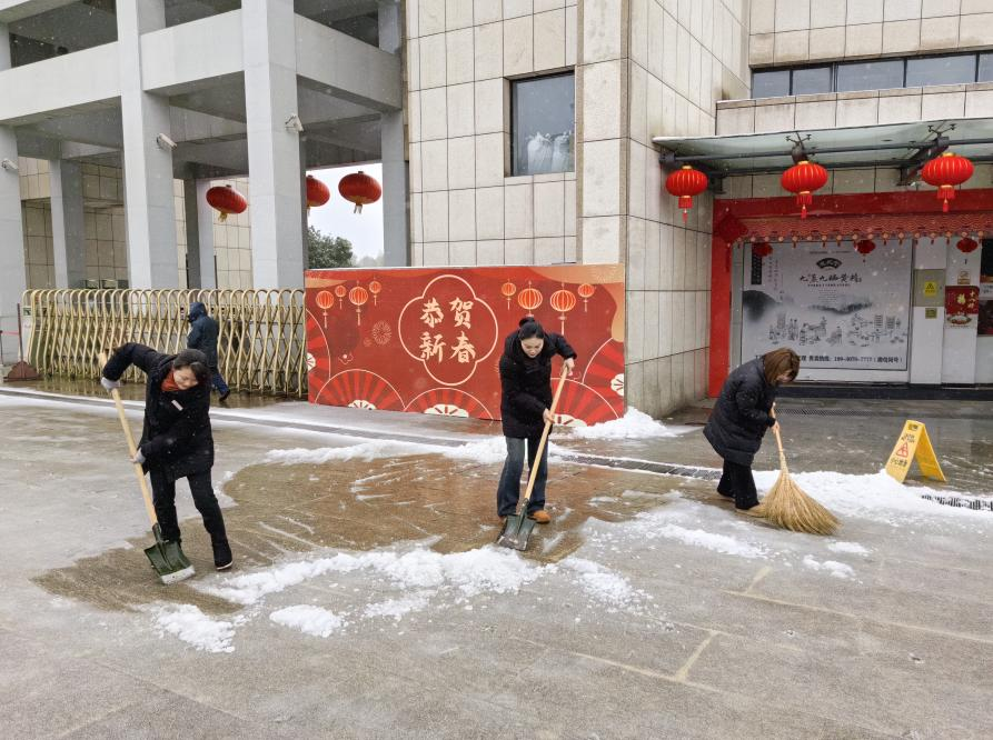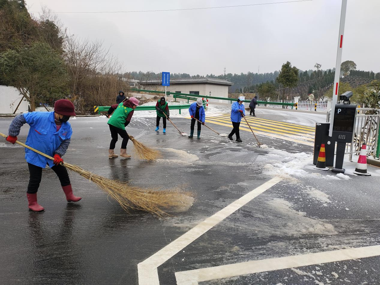 公司組織全體員工迅速投入掃雪除冰行動,安排專人在001縣道小沖口下坡段多次拋灑融雪劑,重點對坡道路面加強清雪除冰工作。全體干部職工,按照下雪應(yīng)急預(yù)案提前劃分好區(qū)域,對各區(qū)域道路的積雪進行清掃。經(jīng)過奮力清雪除冰,通往園區(qū)和館內(nèi)道路積雪積冰情況得到有效緩解。