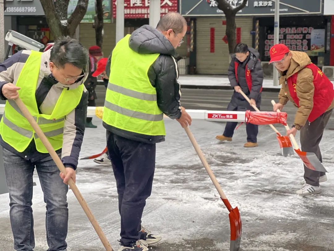 2月23日上午,孝肅街公司第一時間組織黨員和職工紛紛走上街區(qū)開展掃雪除冰活動。寒風陣陣,并沒有阻擋支部黨員干部和職工掃雪除冰的熱情。經(jīng)過2個多小時連續(xù)的奮力清掃,將街區(qū)人行道積雪打掃干凈,讓街區(qū)道路變得安全暢通,為市民群眾的安全出行帶來了便捷,更是傳遞了一份溫暖和正能量。