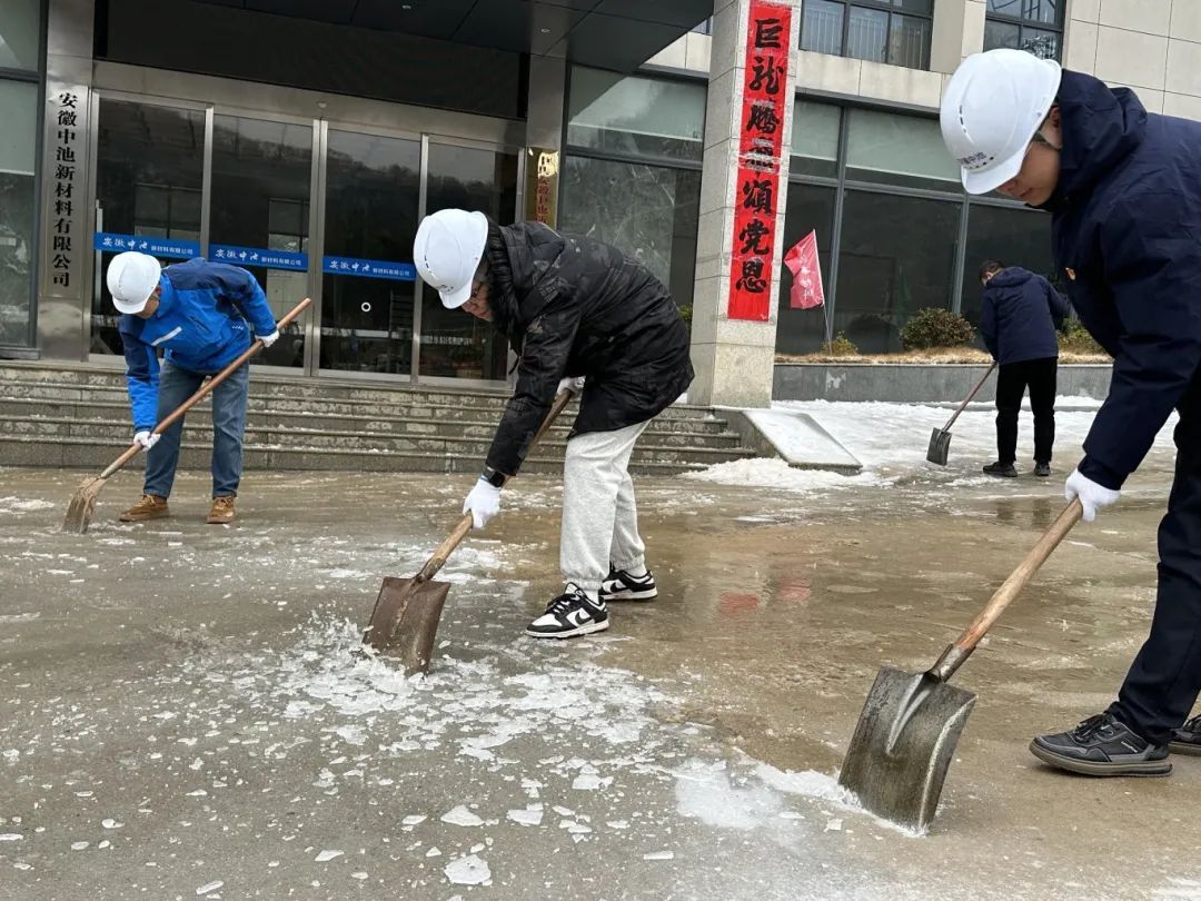 中池公司黨支部及時開展“鏟雪除冰行動”,組織黨員和入黨積極分子對公司大門口、主干道、公寓門前、車庫等重點區(qū)域的積雪和冰層進行全面清理。采取“人工+機械”的方式,配合好鏟車將“防滑通道”延伸至礦區(qū)入口,并在重點區(qū)域撒上工業(yè)鹽,為來往車輛和從業(yè)人員上下班暢通道路。